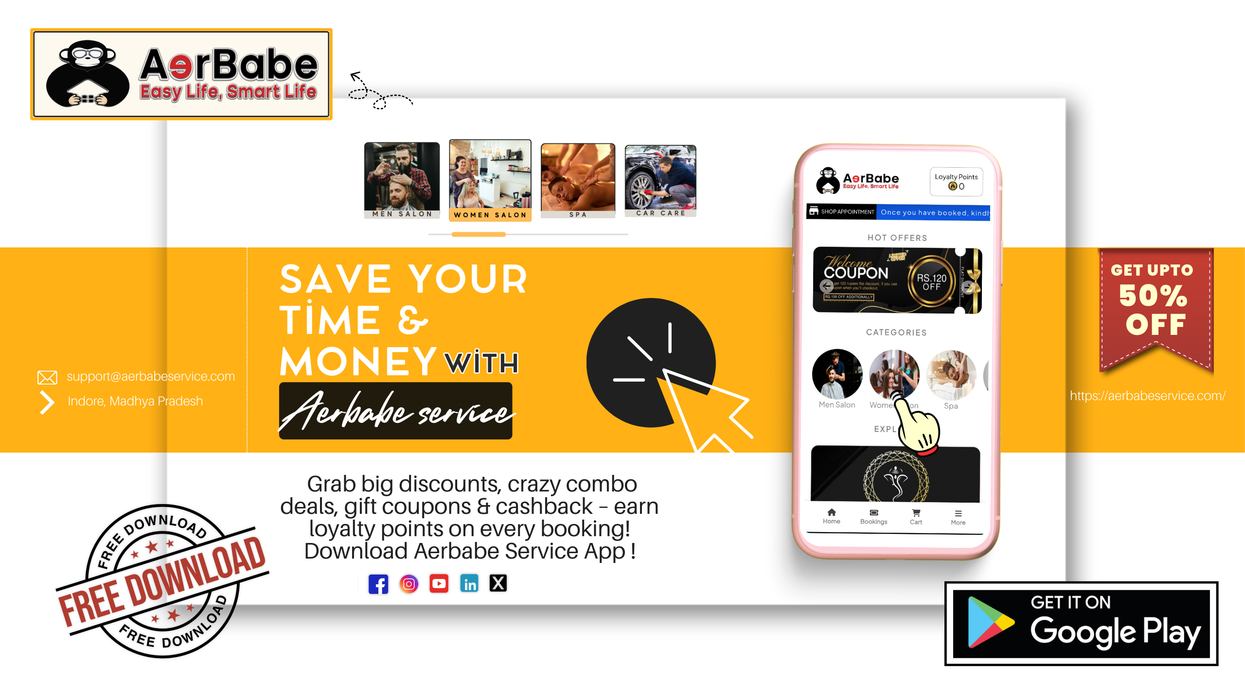 Book Salon, Spa & Car Wash Appointments in Seconds — Only on Aerbabe 🚀** Indore...